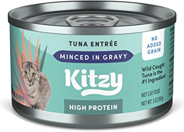 | Kitzy Tuna Entrée Minced in Gravy High-Protein Canned Cat Food | Wet | Tuna | 143 kcal/5.5-oz can | $0.18 per oz | B- |