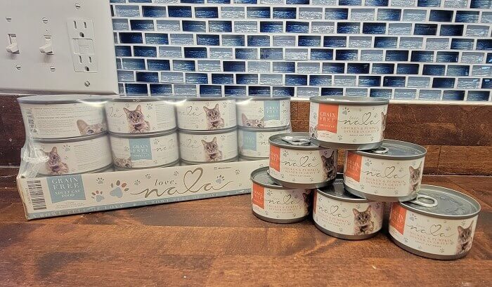 When I set out to order Love, Nala cat food for testing they were sold out of all three dry food recipes. I ordered both wet food formulas instead which are sold in a 12-pack of 2.8-ounce cans.