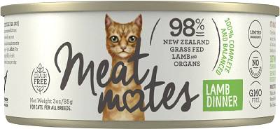 | Meat Mates Lamb Dinner Grain-Free Canned Wet Cat Food | Wet | Lamb | 31 kcal/oz. | $0.64 per oz | A |