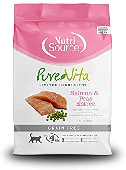 | NutriSource PureVita Grain-Free Salmon & Peas Dry Cat Food | Dry | Salmon | 475 kcal/cup | $5.15 per lb | C |