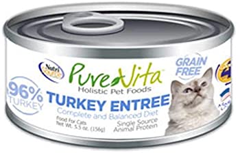 | Pure Vita 96% Grain Free 96% Real Turkey Entree Canned Cat Food | Wet | $0.73 per oz | A- |