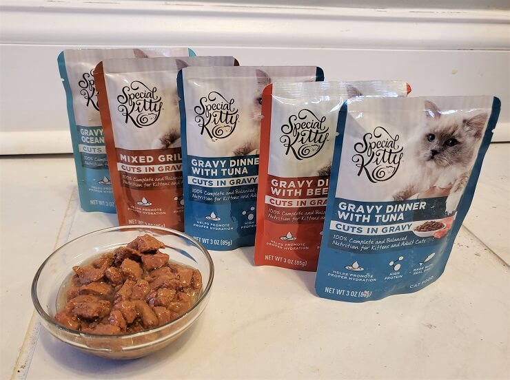 In addition to wet food and dry food, Special Kitty offers an assortment of cat treats and cat litter. We’ll review Special Kitty cat litter at another time.