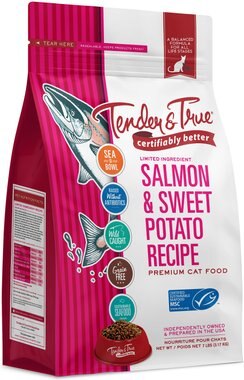 | Tender & True Limited Ingredient Salmon & Sweet Potato Recipe Grain-Free Dry Cat Food | Dry | Salmon | 470 kcal/cup | $4.29 per lb | B |