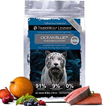 | Timberwolf Legends Ocean Blue Feline Formula Cat Food | Dry | Salmon | 4,418 kcal/kg | $7.49 per lb | B |