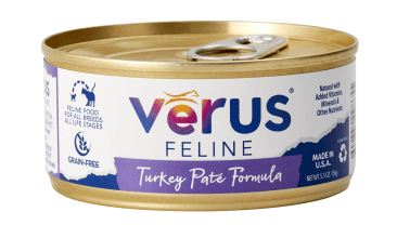 VēRUS canned cat food is typically sold in a case of 24 cans (5.5 ounce cans). We found the cases online for prices ranging from about $54 to $69, depending on the formula and the retailer. The grain-free foods were priced at the higher end of the scale. Prices don’t include shipping costs.